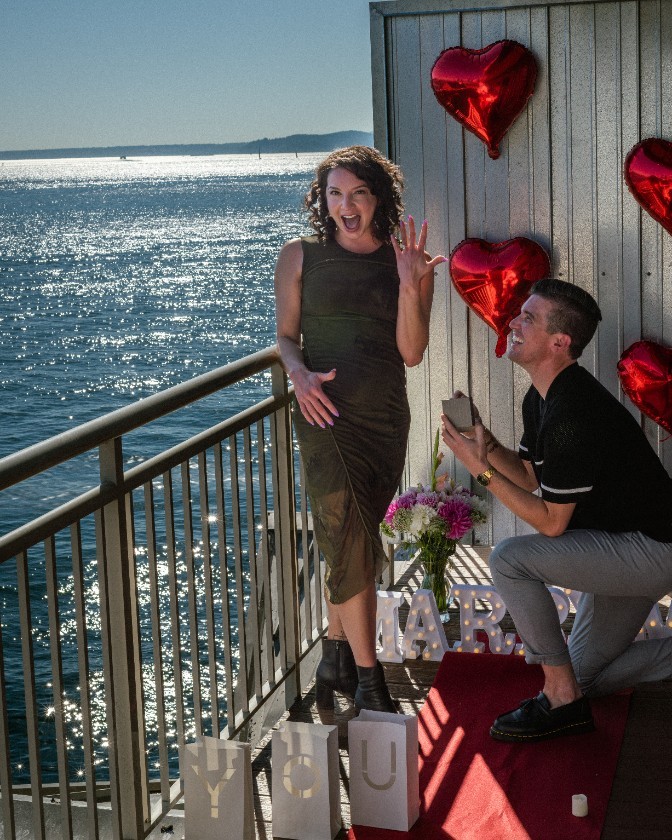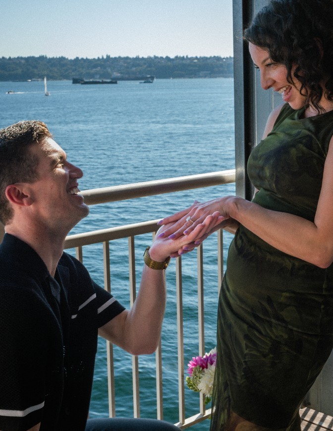 They kept things quiet for a while. New job, new city, new relationship...no need to make it weird. By the time they went public, literally no one was surprised. The real test came later when they found themselves caught between a global pandemic, a very tiny studio apartment, and approximately 24/7 togetherness. Not only did they survive...they thrived. That’s when they knew this was it. On August 22, 2025, Shane proposed at the Edgewater Hotel in Seattle — balcony fully decorated, ring ready, and his grandma Honey secretly in on the whole plan. Celi was completely shocked (a rare achievement). She also accidentally stole a $65 teddy bear from the hotel room. Still, no regrets.